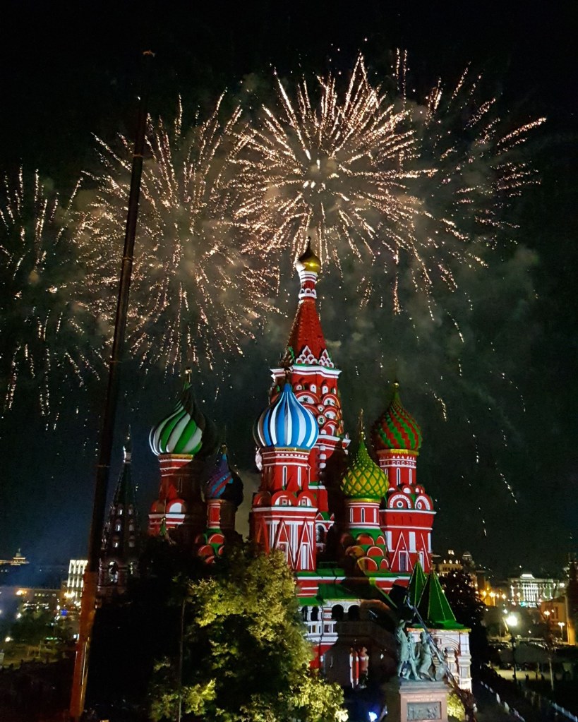 La clou du spectacle pour finir en apothéose, un feu d’artifice au dessus de la cathédrale Basile-le-bienheureux qui change de couleurs en fonction de la musique. On se croirait dans l’introduction d’un film de Disney.
