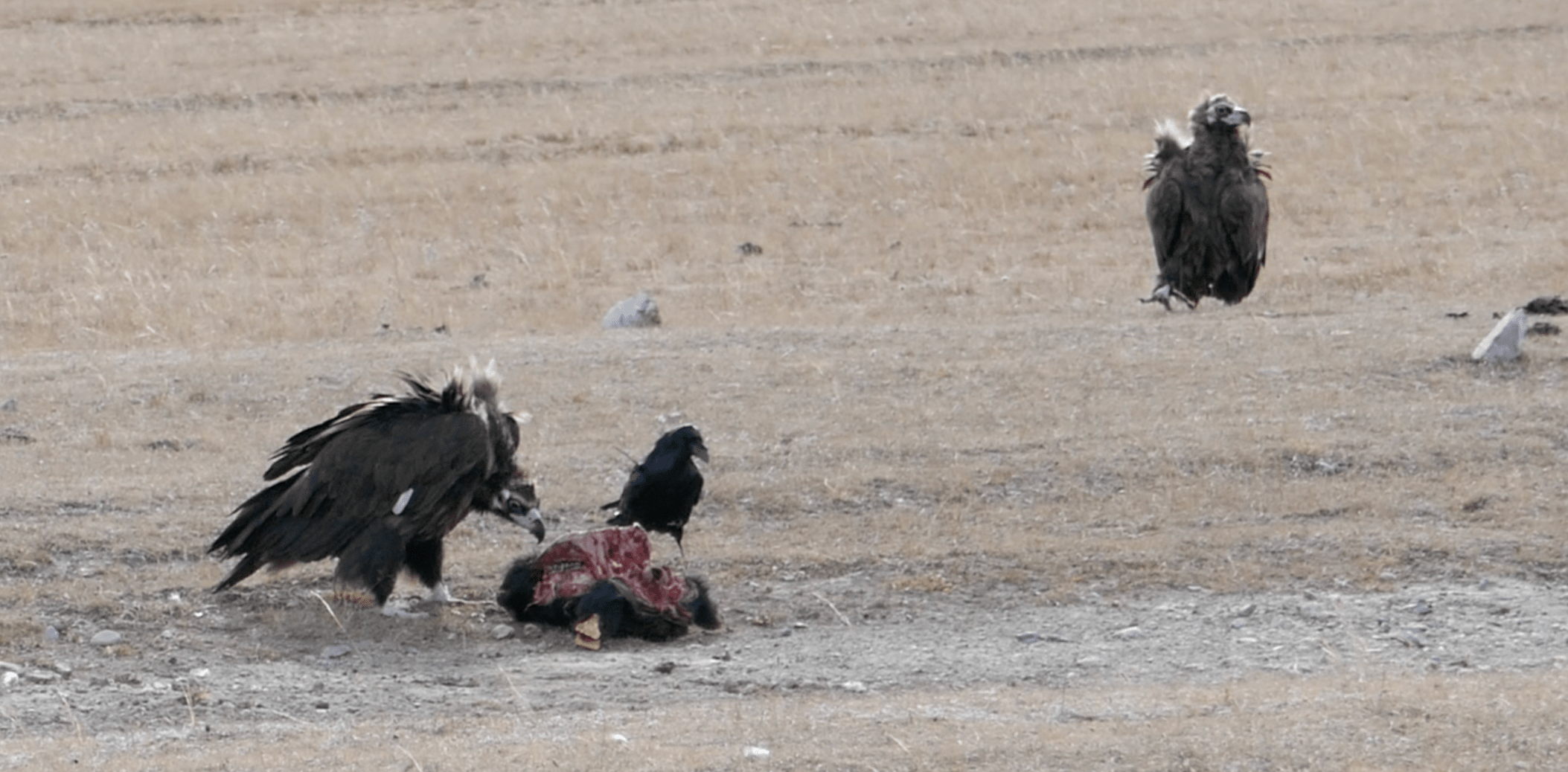 Nous croisons toutes sortes de troupeaux et un spectacle assez impensable : des rapaces posés en bord de route qui se dispute une tête de vache coupé. Bienvenu dans la steppe !
