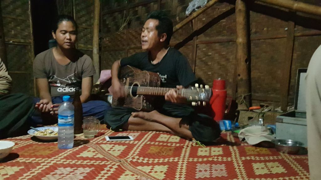 Comme en soirée avec des amis, ils boivent de l’alcool de riz, pendant que notre cuistot et celui de l’autre groupe qui sont cousins, nous proposent un concert acoustique guitare-voix.