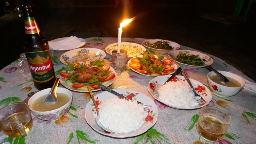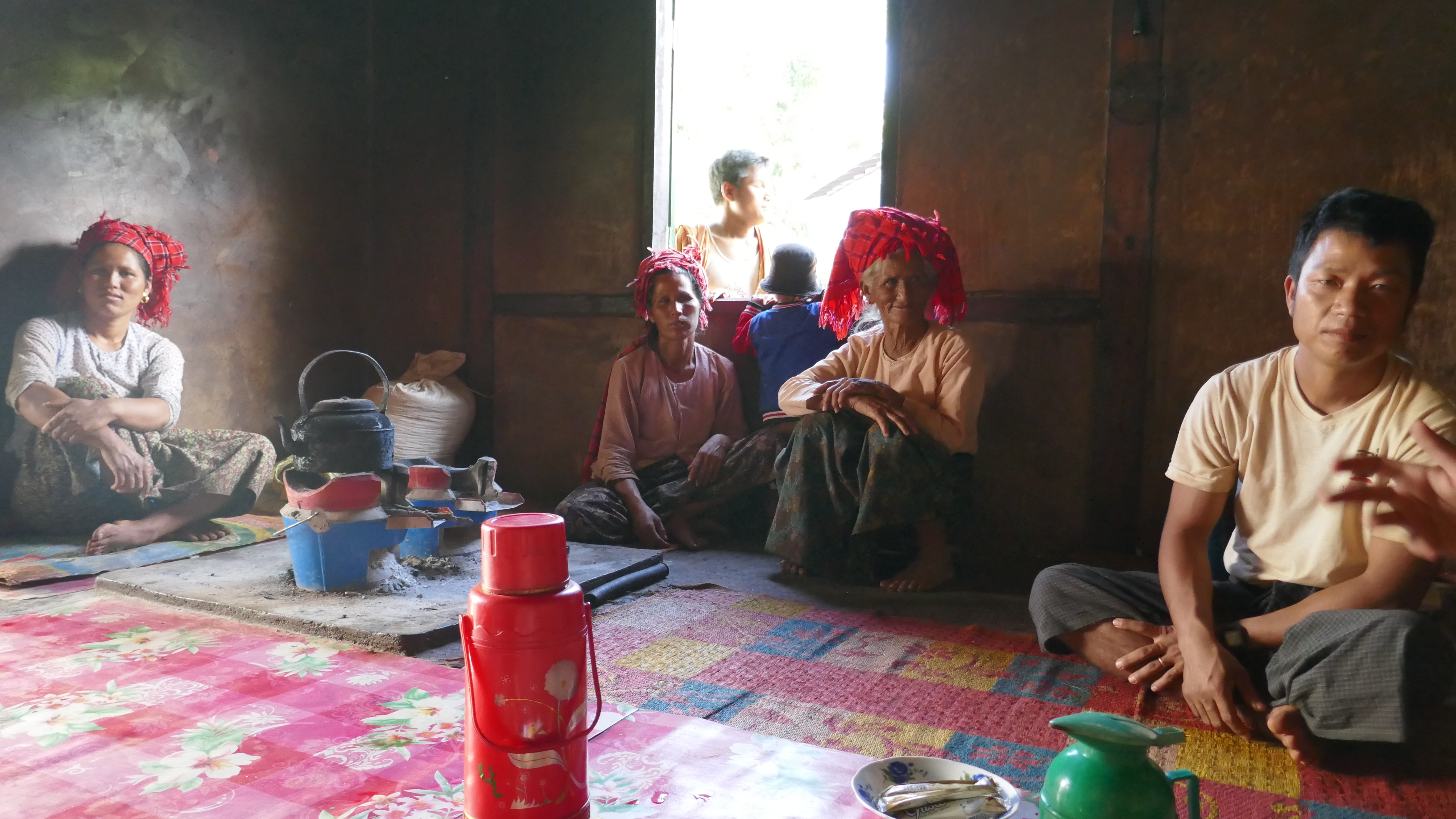 La communication est assez amusante et insolite du fait des différences de langage : nous parlons en anglais à Sanjay qui traduit en birman au fils de la maison, qui à son tour traduit aux femmes qui parlent uniquement leur propre langage.