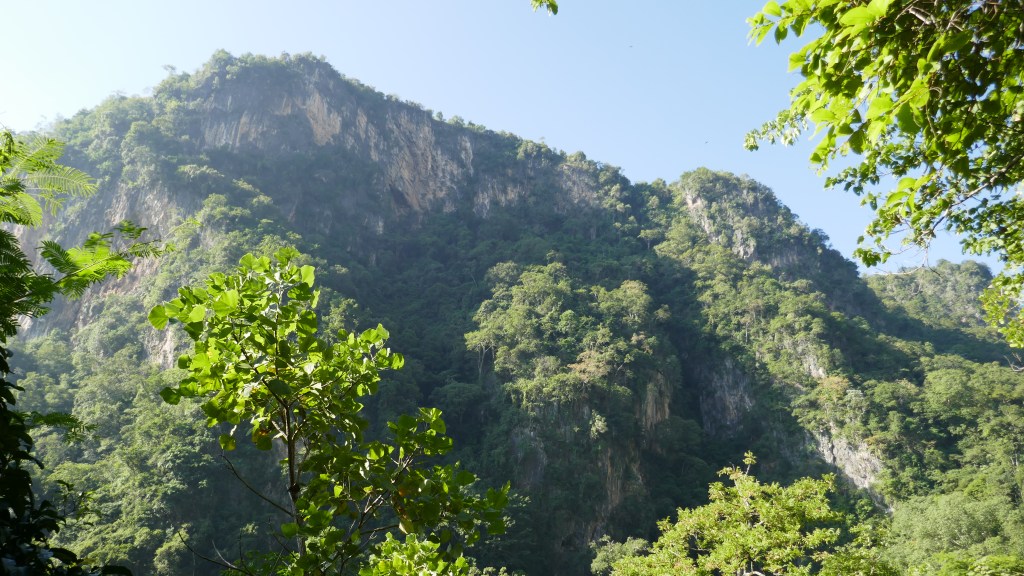 Quand la vue se dégage, nous apercevons les falaises recouvertes de végétation qui nous donne l’impression d’être vraiment perdu au milieu de la nature.