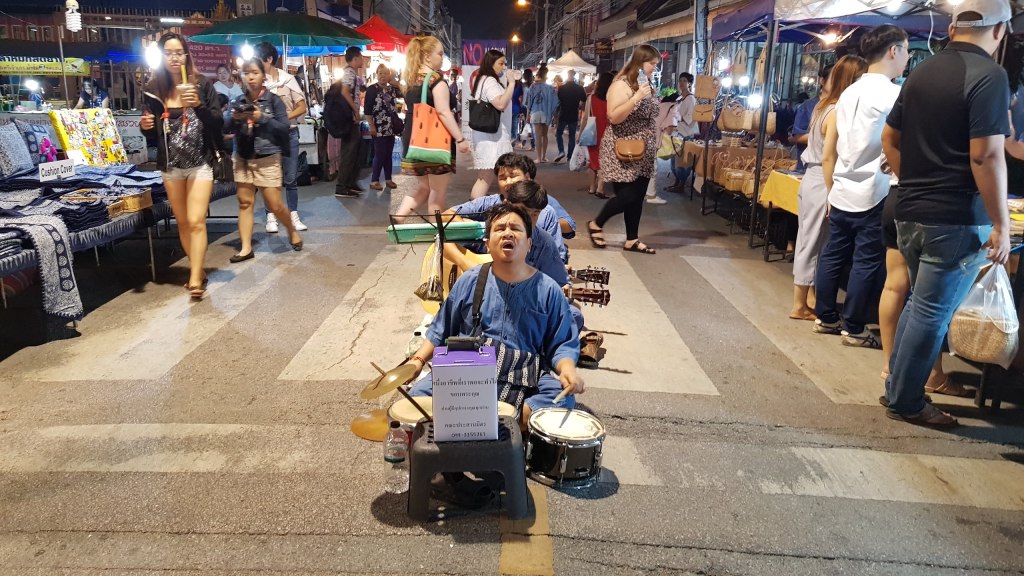 Nous repartons ensuite vers la Saturday Walking Street. Un marché de nuit qui s’installe tout les samedis sur une rue de plus d’1km. La plupart des stands sont des vendeurs de souvenirs, textiles, artisanat local… Puis de la street food, des tonnes de street food.