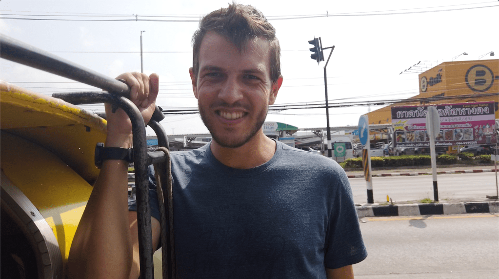 Il nous dépose au bord d’une voie rapide où nous prenons un taxi collectif jaune pour rejoindre la vieille ville. Seulement 15 bath par personne et que des locaux à bord.