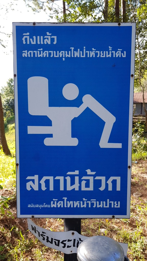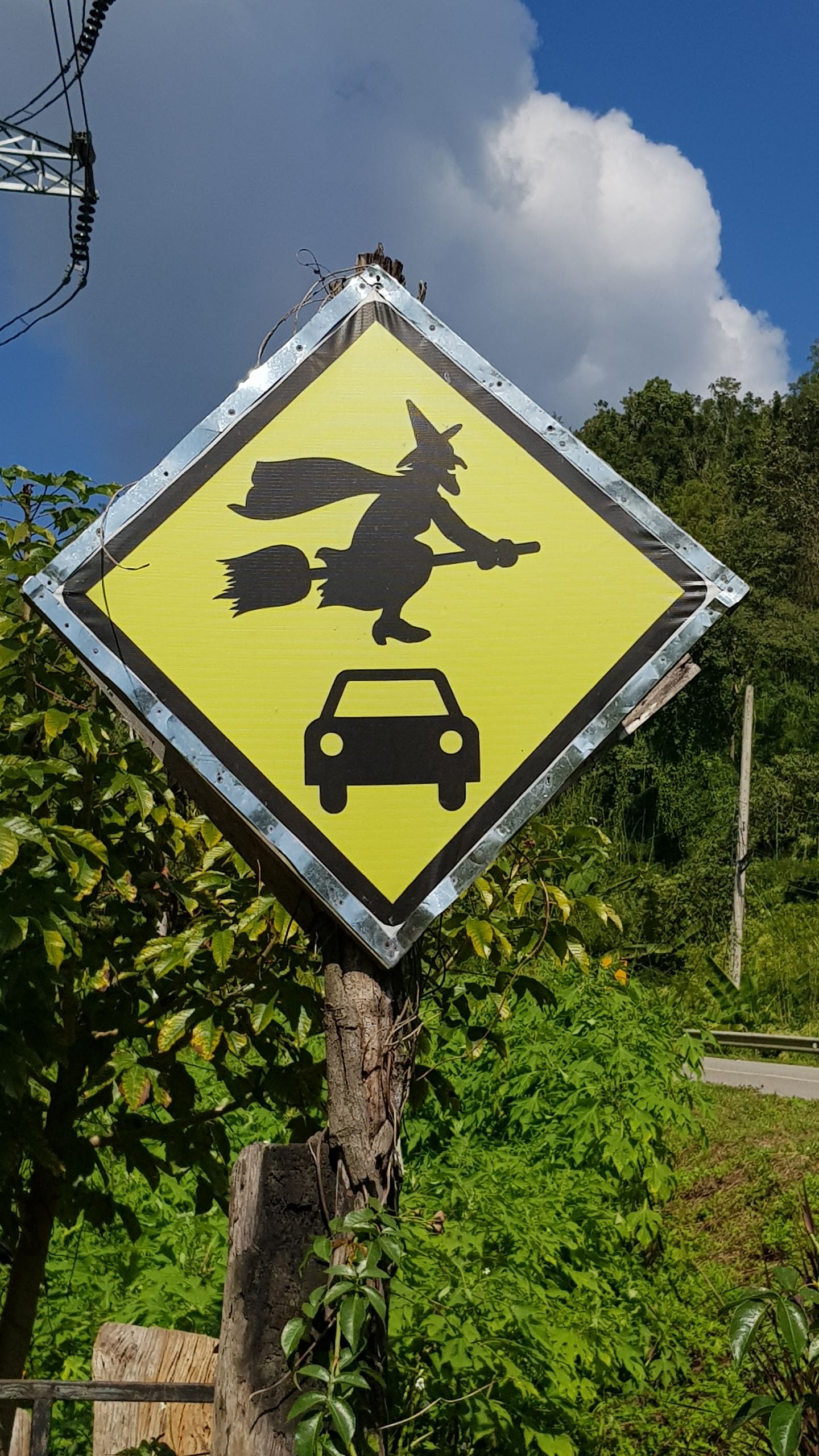 Sur la route, en sortant des intestins, nous croisons un panneau hors du commun assez amusant. Une petite pause s’impose.