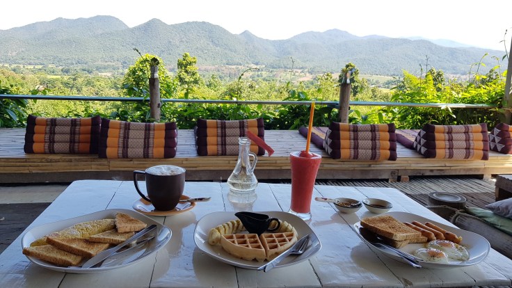 Nous profitons d’un bon petit dej avant de déménager dans notre havre de paix.