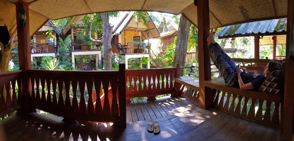 Après une matinée tranquille, nous déménageons donc au Misty View. Le gérant nous fait visiter les 2 bungalows disponibles. On opte pour le numéro 2, avec une terrasse deux fois plus grande et de quoi bien s’installer pour y passer du temps. On vide le sac et on s’installe comme pour une semaine de vacances. Déjà l’endroit est calme et paisible.