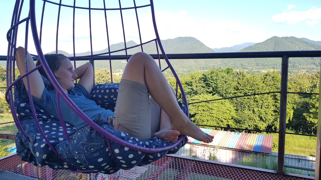 On s’y pose dans des hamacs suspendus avec vue sur le montagne. Un smoothie passion, un plat thai et un moment de détente… Le rythme de vie de Pai…