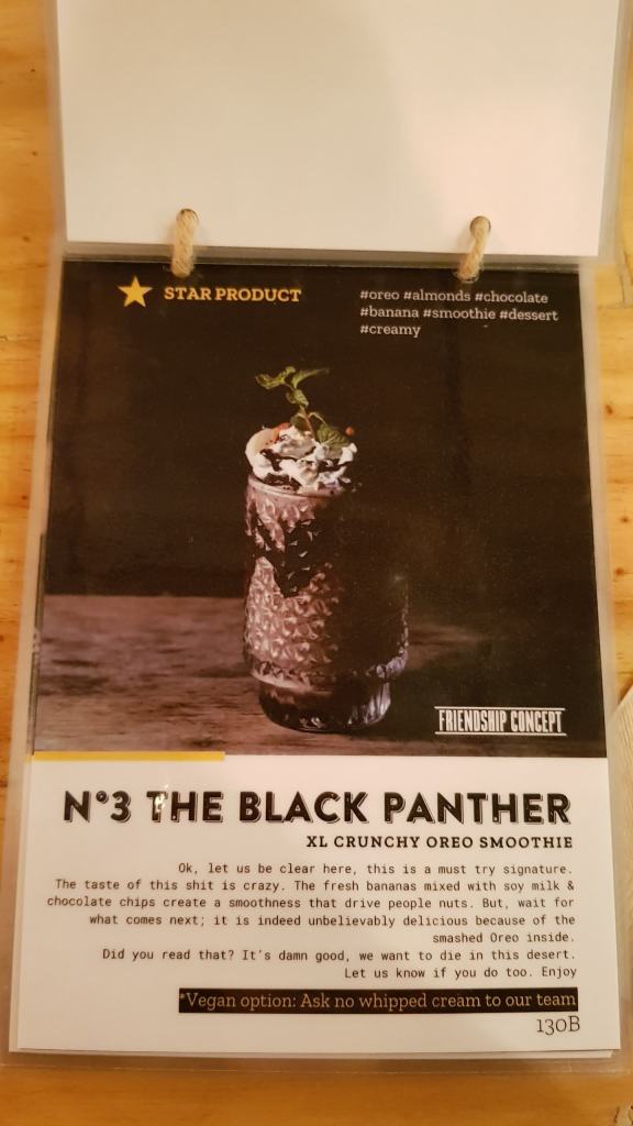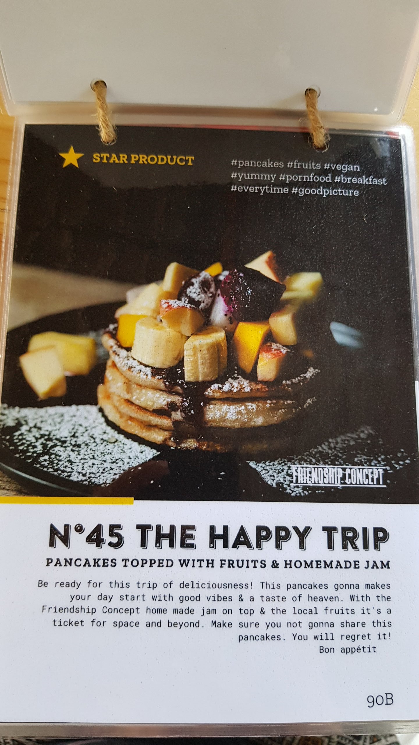 Nous allons prendre un petit dej au Friendship concept, un restaurant végétarien tenu par un français qui s’amuse à créer des recettes originales.
