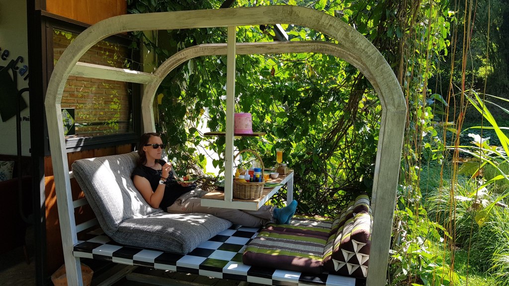 Après s’être bien rempli le ventre, nous profitons d’une dernière après-midi de détente tranquille sur notre terrasse.