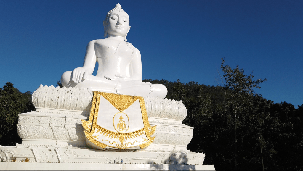 Nous allons ensuite visiter le Boudha Blanc, unique attraction de la ville. Un grand Bouddha blanc assis est perché au milieu de la montagne. Nous l’apercevons depuis la route et il est accessible par quelques 300 marches.