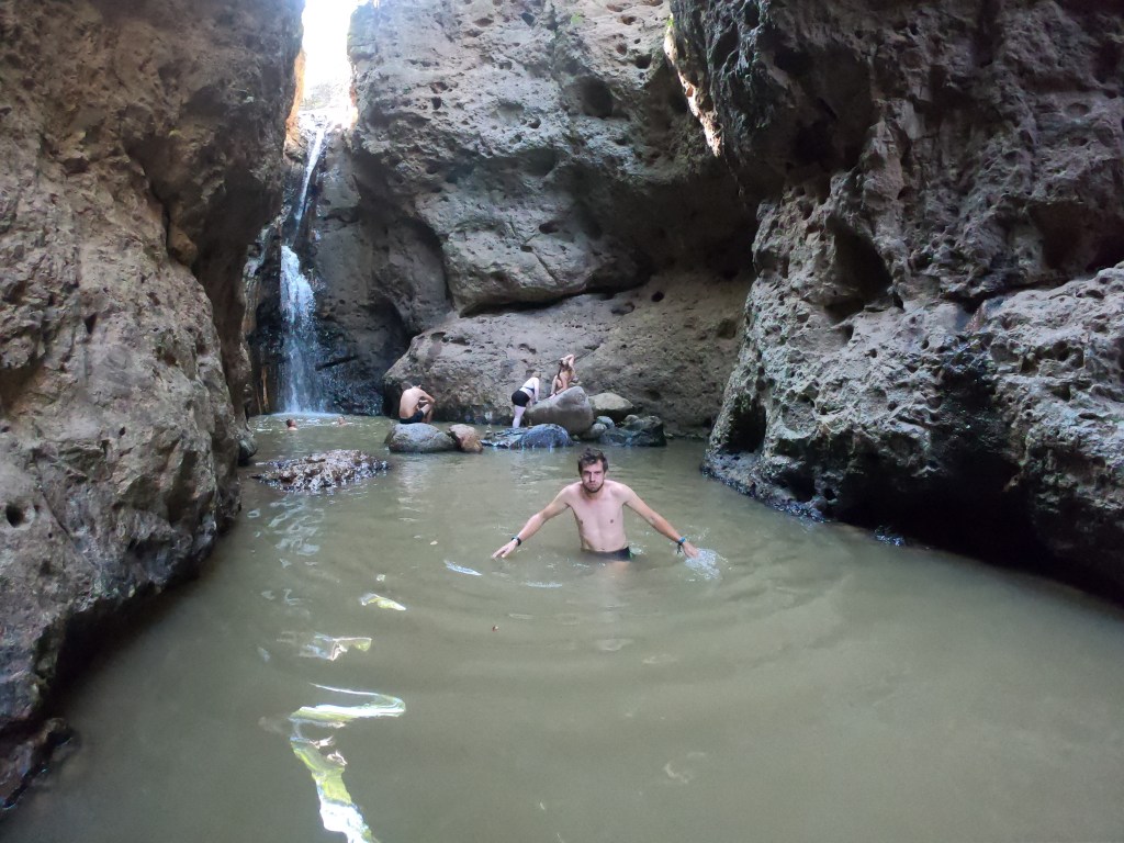 Nous rejoignons la cascade principale après un chemin aménagé. Il y a pas mal de monde au bord des roches mais seulement quelques personnes dans l’eau. Comme le défi nous y oblige nous allons à la baignade. L’eau est un peu fraîche mais ça passe.