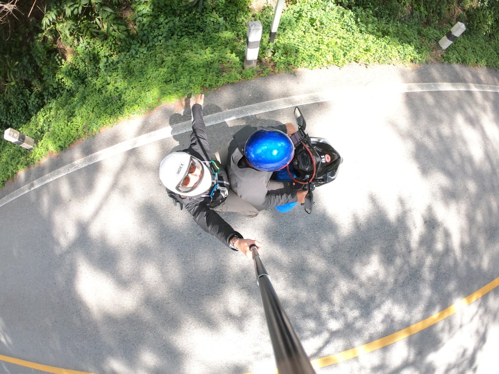 La route est très fréquentée. Des minivans s’enchainent pour relier la route entre Chiang Mai et Pai. Et leur réputation s’avère fondée, ils déboulent dans les virages à toutes allures. Ceci dit, tous les véhicules font de même. Alors, on redouble de prudence sur notre deux-roues.