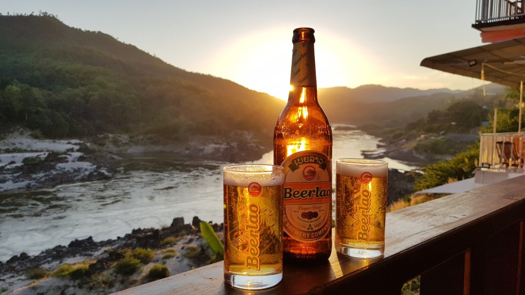 Nous nous posons sur la terrasse avec une bière et vue splendide sur le coucher de soleil.
