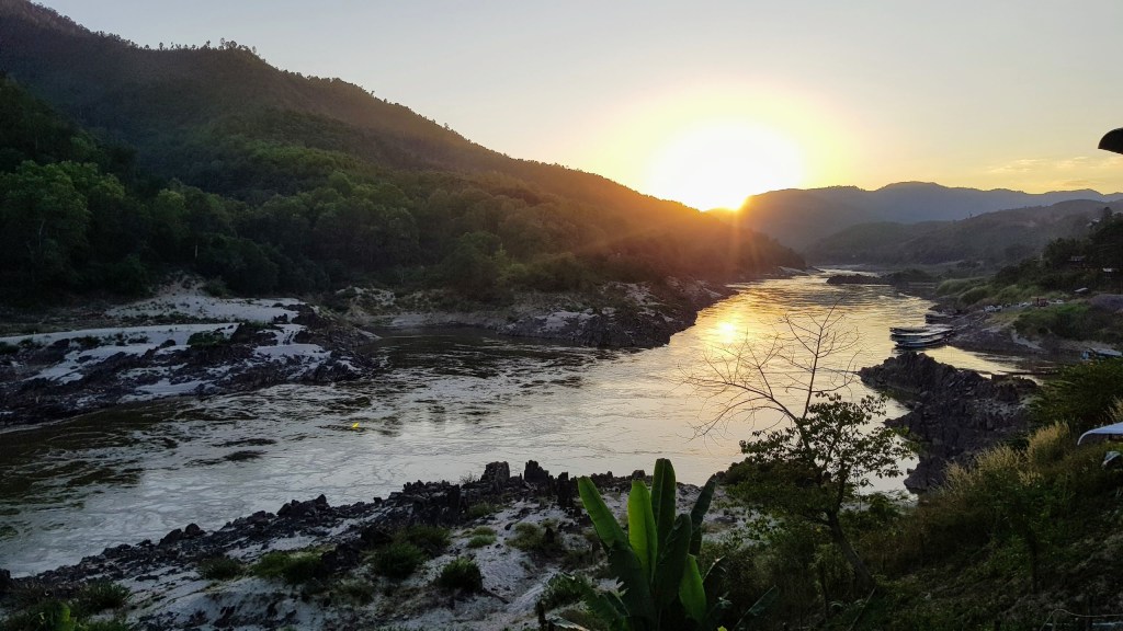 Nous nous réveillons à 6h15 avec vue sur le Mékong.