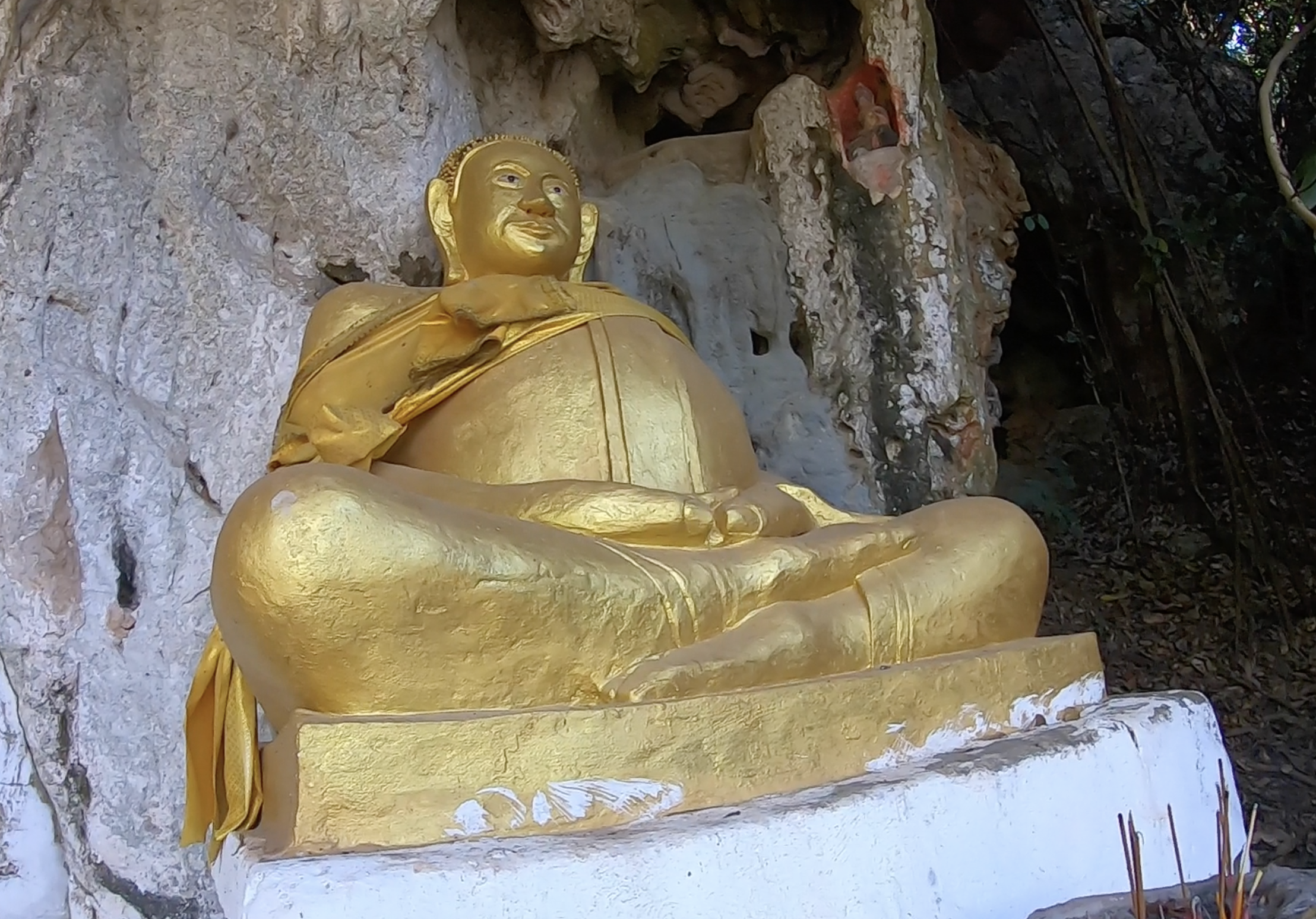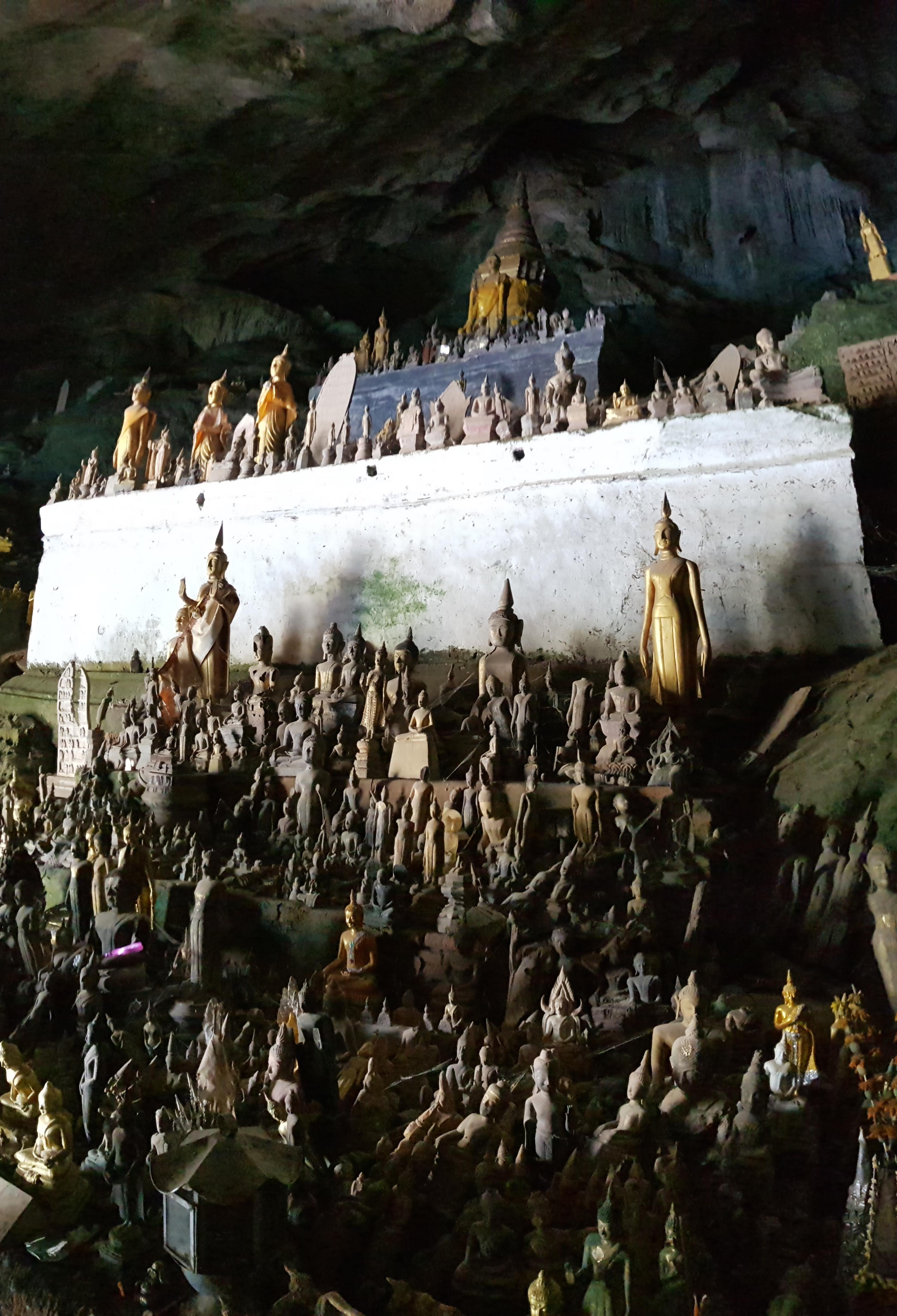 Sur le parcours, nous faisons une halte à la Bouddha Cave. Accessible uniquement par bateau, une grotte renfermant des centaines de statuts de Bouddha. Puis, des marches mènent jusqu’à une autre grotte un peu plus haut. Accueilli par un gros Bouddha, la grotte est dans le noir total et renferme d’autres centaines de petits Bouddha.