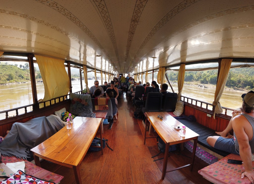 Nous sommes bien installés et pouvons profiter paisiblement de ces 2 jours de croisière. Certains passagers nous racontent leurs expériences sur le slow boat local. Nous ne pouvons imaginer passer 2 jours entiers entassés avec 100 personnes sur un tel bateau. Impossible de bouger, d’aller au toilettes…