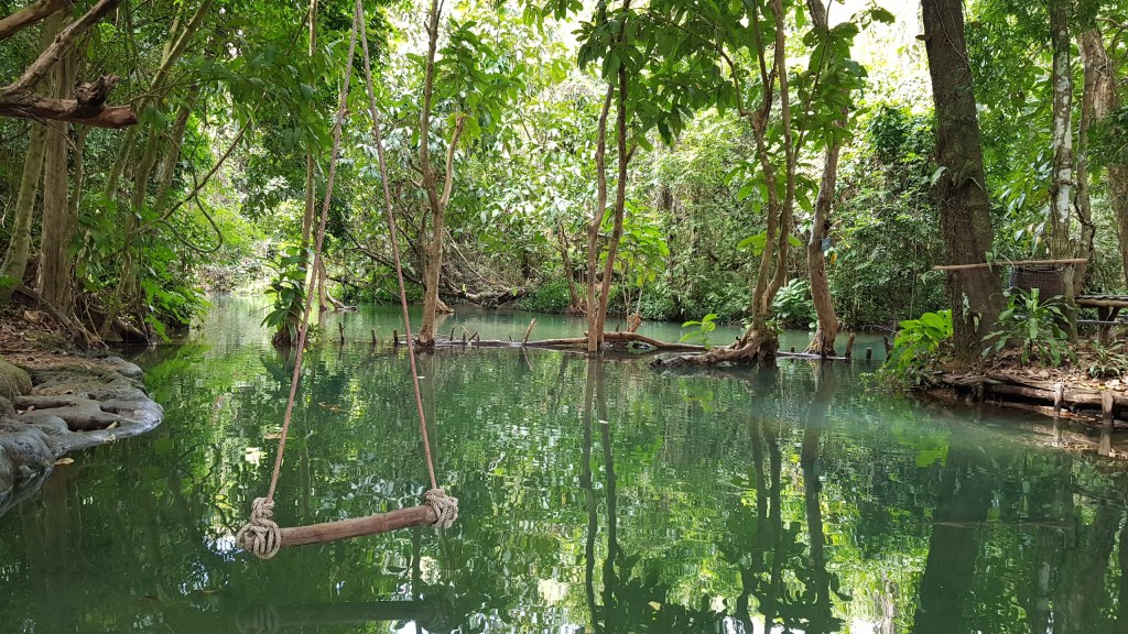 Un chemin longe le cours d’eau et nous amène de bassin en bassin, plus beaux les uns que les autres en plein cœur d’une végétation luxuriante.
