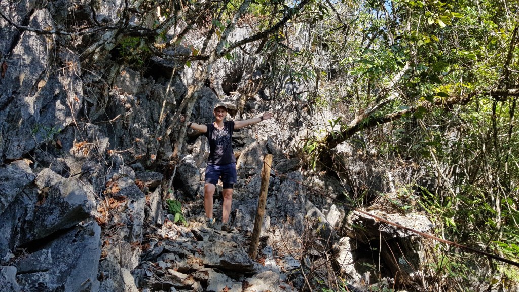 Il nous reste de la distance alors on redémarre rapidement. Ça commence à se corser sévère. Toujours aussi abrupte, mais cette fois, le chemin de forêt laisse place aux roches karstiques, des rochers pointus et tranchants comme des lames de rasoirs. Pas le moment de tomber, de trébucher ou même de se cogner.