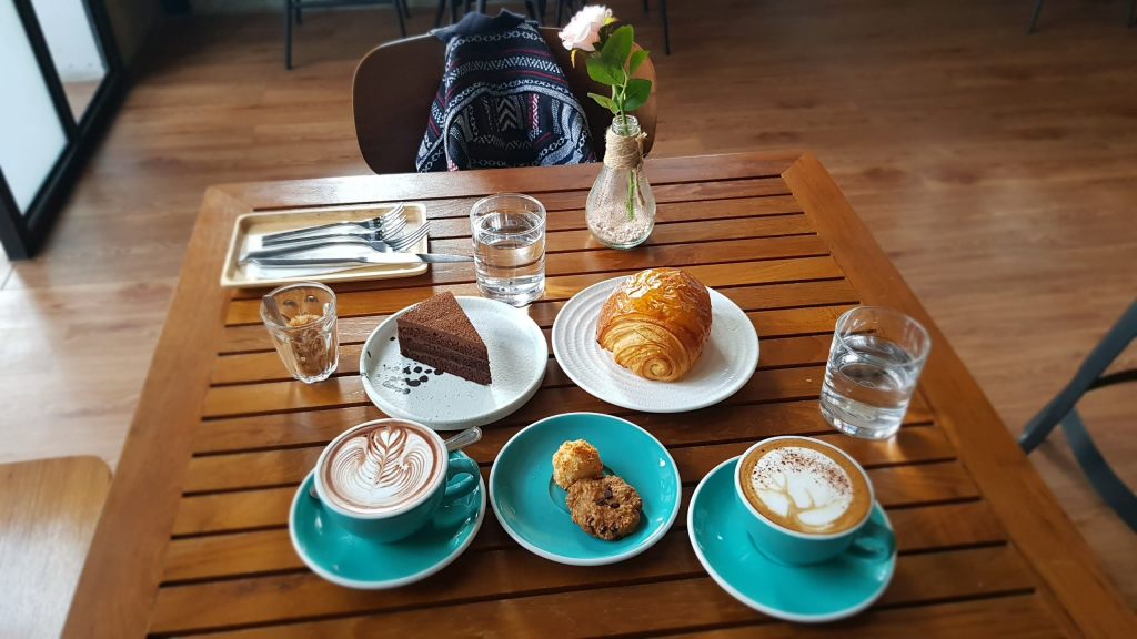 Nous nous installons au Plateau café & Bakery, pour travailler sur la suite du voyage. On s’installe à l’étage dans un lieu bien cosy et tout seul avec un bon cappuccino et une chocolatine à tomber.
