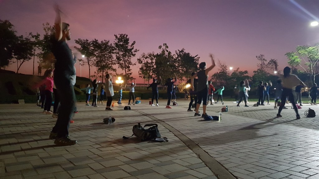 Nous allons ensuite faire un petit tour aux alentours. Nous rejoignons le parc juste en face qui longe le Mékong. Et on tombe par hasard sur un cours de Zumba qui se prépare. On hésite un peu, pas longtemps et on se joint au groupe. On suit alors un cours de danse endiablé pendant 1h, avec notre sens du rythme légendaire. Ça fait du bien de faire du sport et on s’est bien amusé. On s’acquittera du tarif du cours de 6 000 kips chacun (0,60 centimes d’euros).