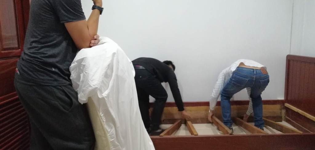 Nous rentrons tranquillement à l’hôtel pour une bonne nuit. Enfin presque… En se mettant dans le lit, Sarah se sent comme aspirée vers le centre du matelas. Nous soulevons le matelas pour découvrir que les lattes du lit sont complètement cassées. Difficile voir impossible de dormir dedans. Nous informons donc la réception de l’hôtel pour changer de chambre. Sauf que toutes les chambres sont occupées. Deux hommes viennent alors jusqu’à la chambre pour tenter de réparer le lit avec leurs quelques outils. Sauf que ce n’est pas réparable. Le patron de l’hôtel vient à son tour. Après réflexion, ils finissent par sortir le lit de la chambre et installer le matelas par terre. Finalement c’est pas plus mal. Le patron est vraiment désolé de cet incident et se confond en excuses.