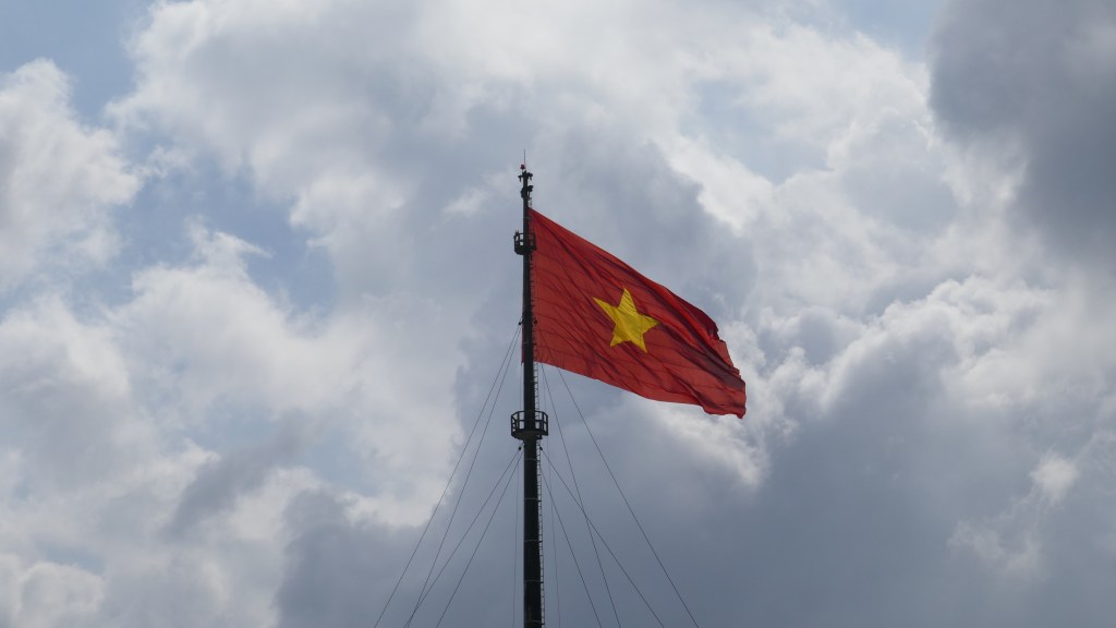 Un immense drapeau vietnamien qui flotte dans les cieux nous accueille à l’entrée. Nous nous acquittons du droit d’entrée à 150 000 dong chacun et prenons un audioguide à 100 000 dong (sans lequel la visite aurait clairement été moins intéressante !).