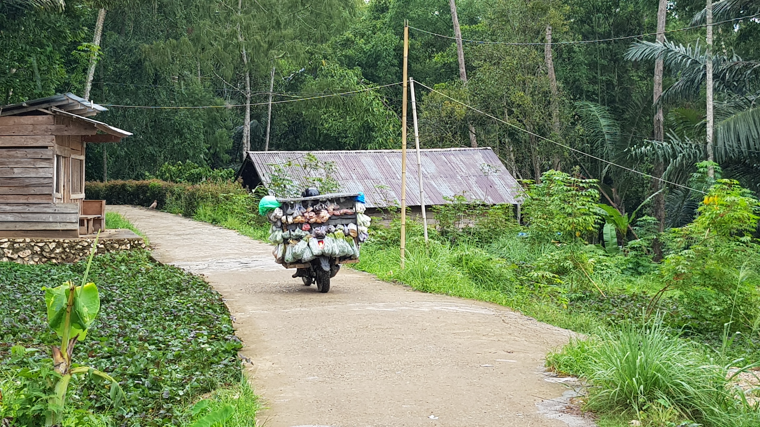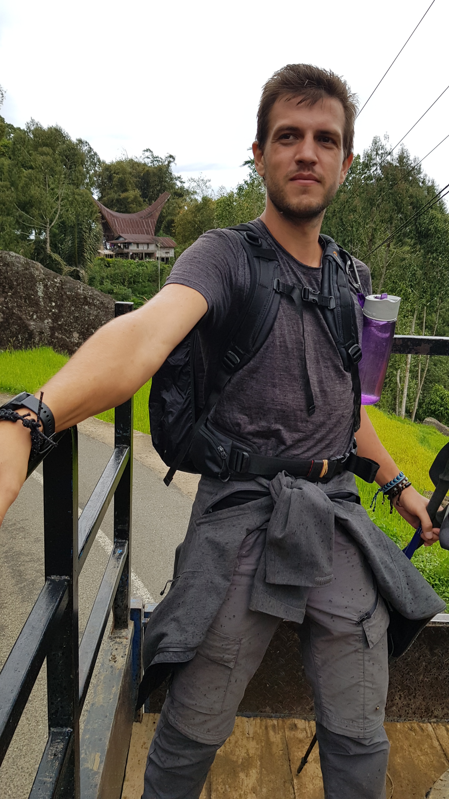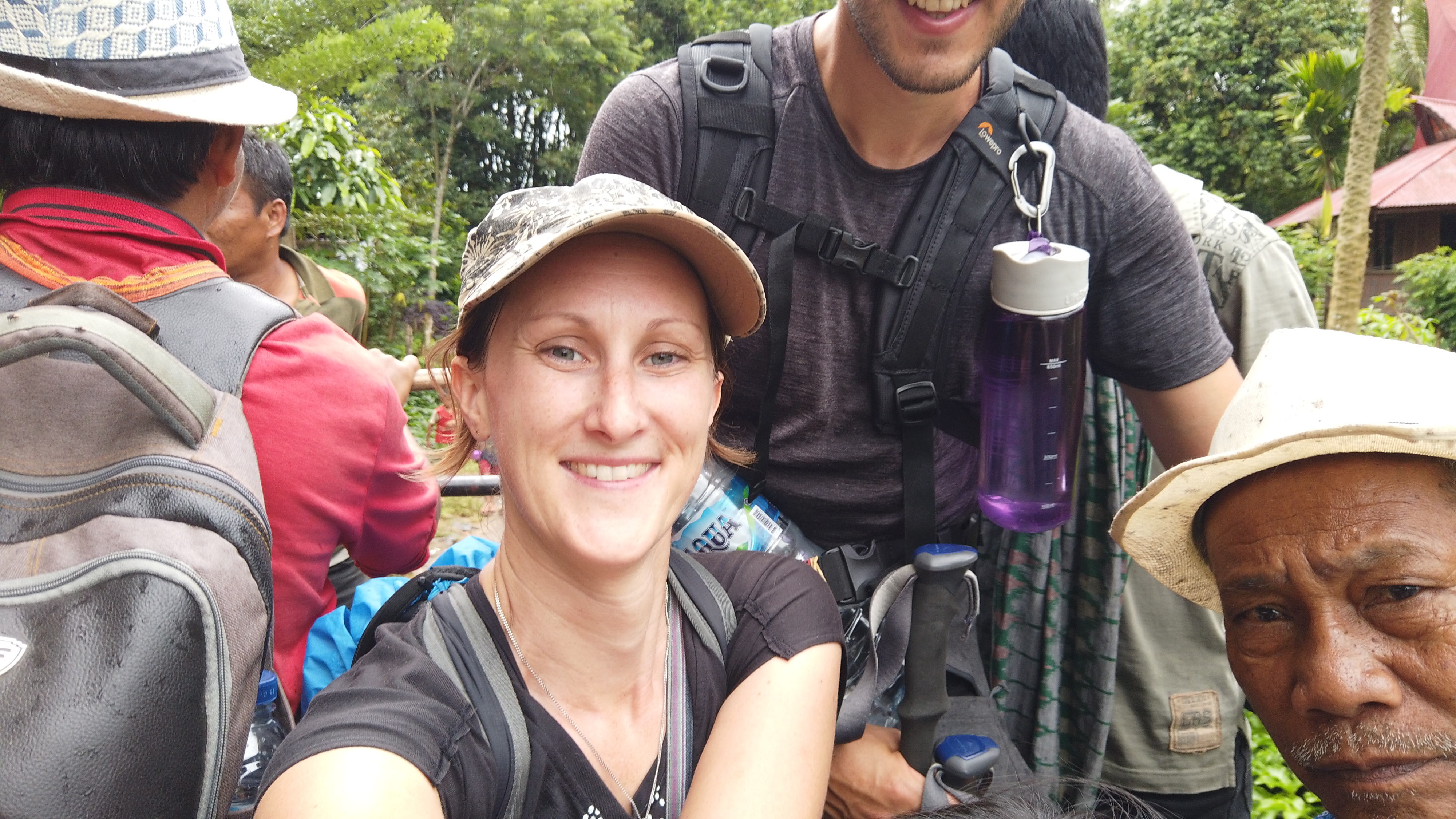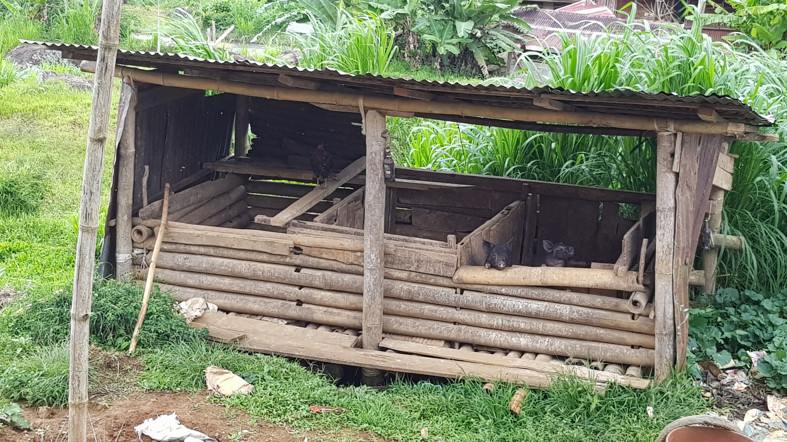 Lors de ce trek, on a un peu triché ! Au passage d’un truck qui sert ici de transport local, nous sautons à bord et rejoignons quelques locaux et … des cochons. Les locaux sont tout amusés et heureux de partager ce moment de transport avec nous. Ils en profitent pour faire quelques photos et vidéos. Ici, on redevient des stars. Le trajet à l’air libre à l’arrière de ce camion, avec des cochons qui glissent sur nos pieds, c’est clairement le genre d’expérience qu’on apprécie énormément. Nous qui voulions tester un maximum de transport locaux, on est servi !