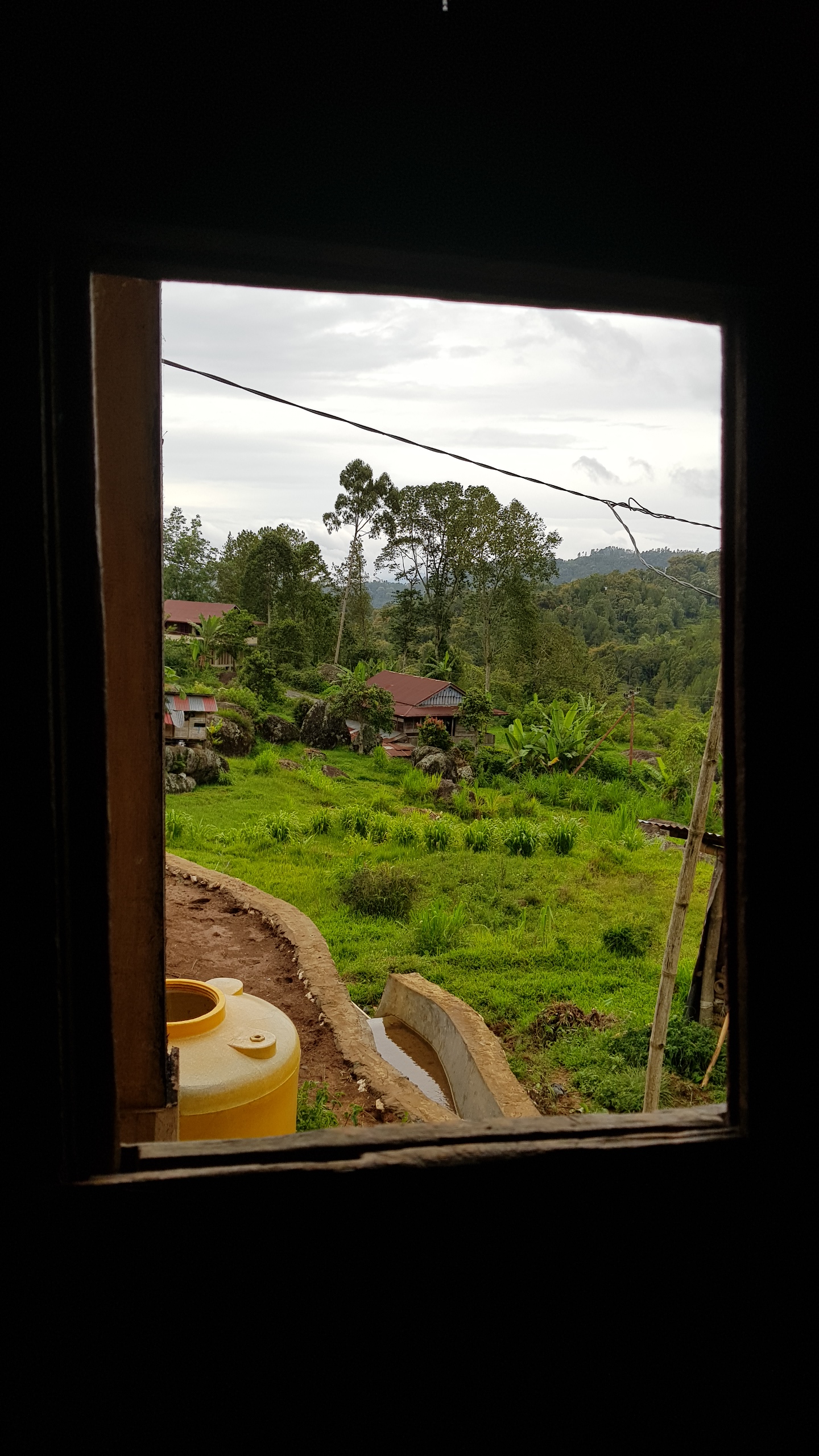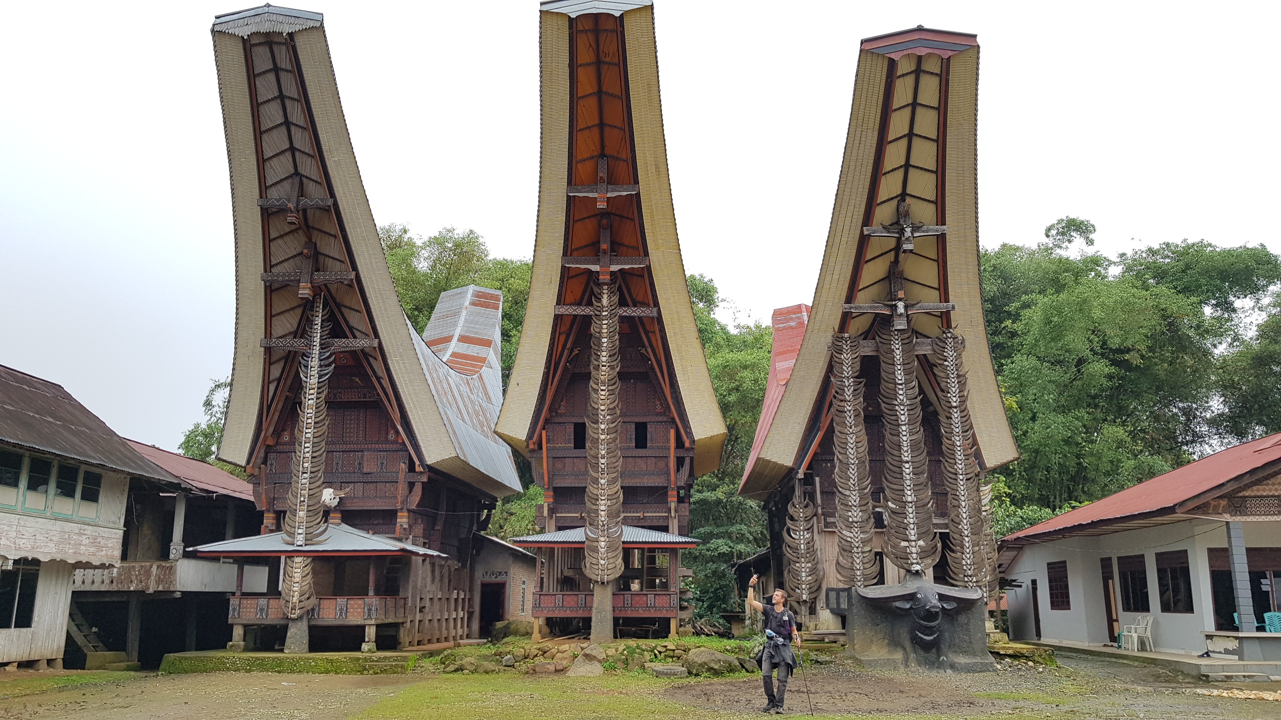 Jacob nous a annoncé la veille que une des personnes de la famille était malade. On a pas bien compris sur le coup. En fait, cette personne est décédée. Nous apprendrons plus tard que pour les Toraja tant que la cérémonie n’a pas eu lieu, la personne décédée est considérée comme malade. Il nous a gentiment proposé de dormir dans la pièce à coté du mort. Nous avons décliné la proposition et avons pu nous installer dans un bâtiment voisin. Nous avons eu quelques explications. La personne est décédée depuis déjà 4 mois. La famille doit se réunir pour décider de la date de la cérémonie, celle-ci pouvant avoir lieu d’ici 1 à 2 ans le temps de récolter les fonds nécessaires. La question que tout le monde se pose : « mais un corps mort, est-ce que ça sent !? » Et bien, à priori non, ils font des injections de formole pour préserver le corps et éviter la dégradation.