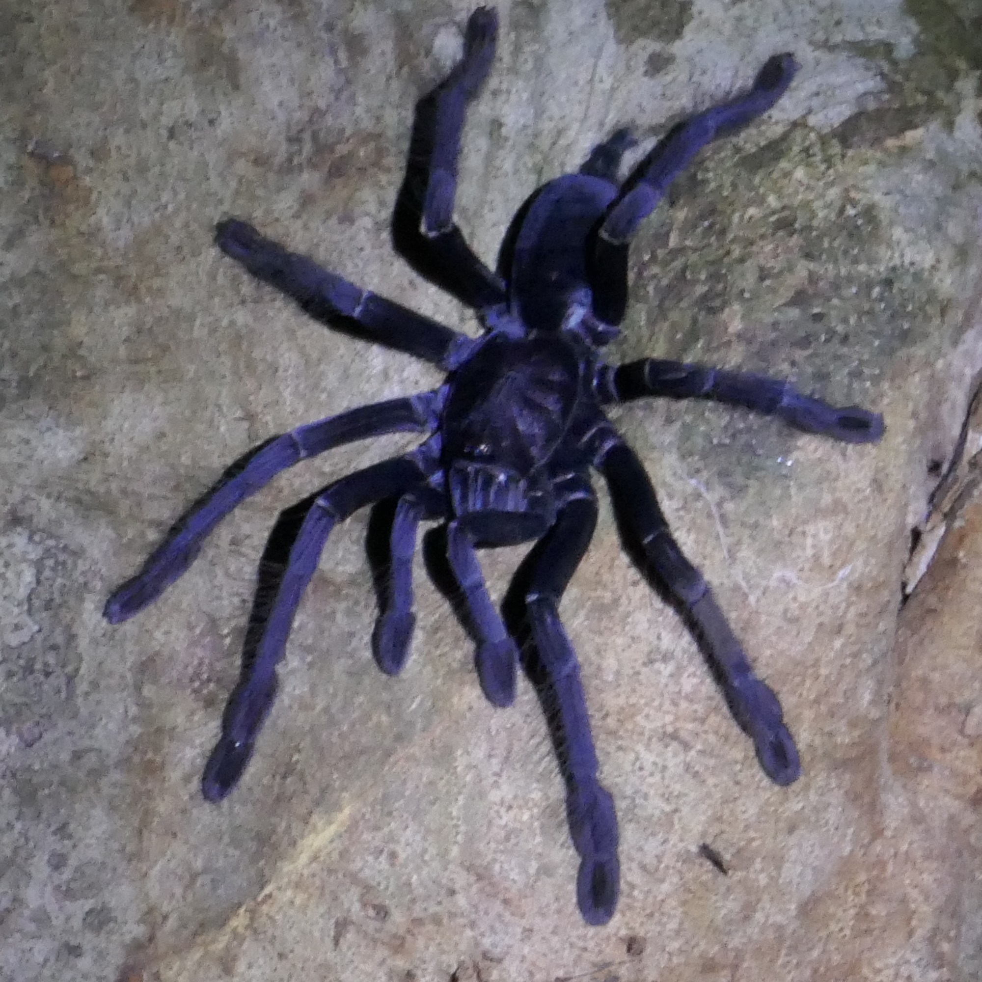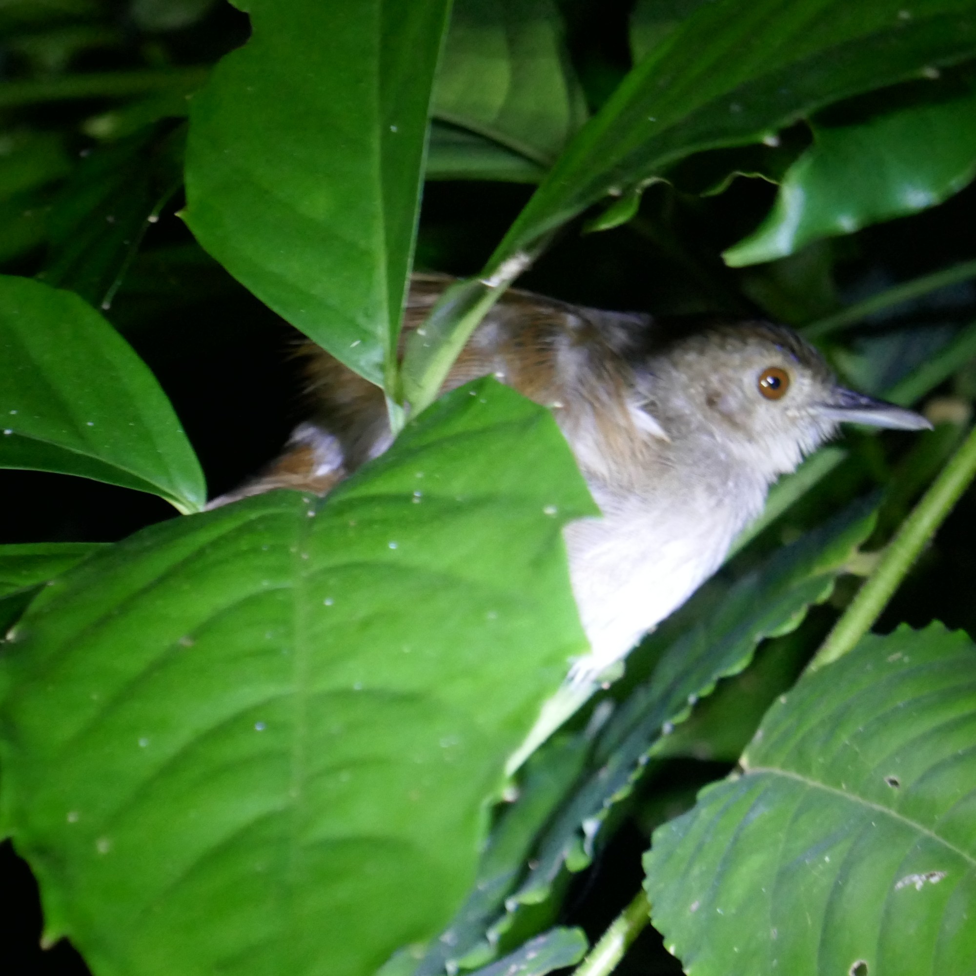 Nous retrouvons notre guide Francky et nous enfonçons dans le noir armés de nos petites lampes torches. Le parcours démarre par un chemin aménagé qui s’enfonce doucement dans la forêt. Puis, peu à peu nous entrons en plein coeur de la jungle. Seul le bruit de nos pas, les vagues se cassant sur la plage au loin et les cris des animaux nocturnes accompagnent notre excursion. Malgré l’heure matinale, nos yeux et nos oreilles sont aux aguets. Heureusement pour nous, notre guide à l’oeil. Nous éteignons nos torches pour laisser place à la pénombre, et en deux en trois mouvements, il nous dégote une monstrueuse tarentule posée sur un tronc ; un Drogo Bird perché sur une branche qu’on distingue tout juste ; un Sulawesi babler, petit oiseau caché sous une feuille…