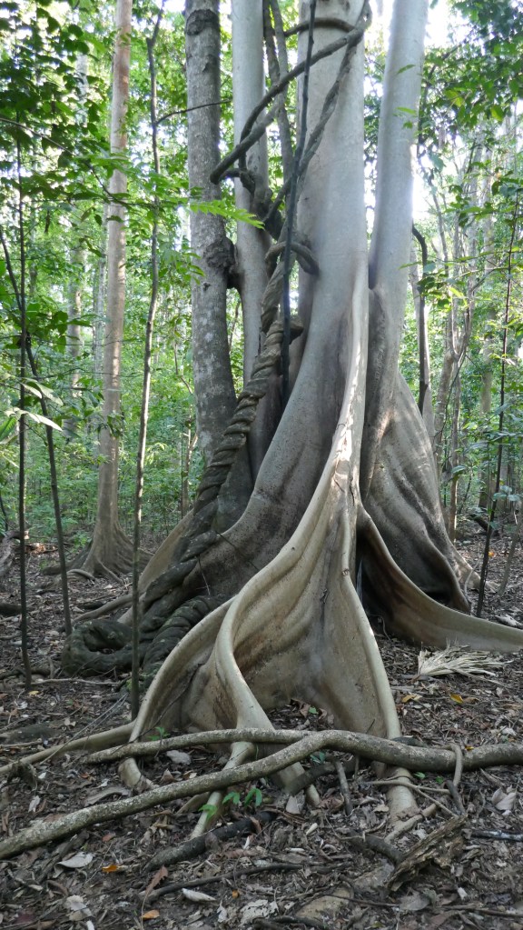 Les arbres de la forêt sont impressionnants. Nombres d’entre eux sont bouffés par les figuiers étrangleurs qui les enveloppent au fil du temps jusqu’à ce que l’arbre soit complètement mort.